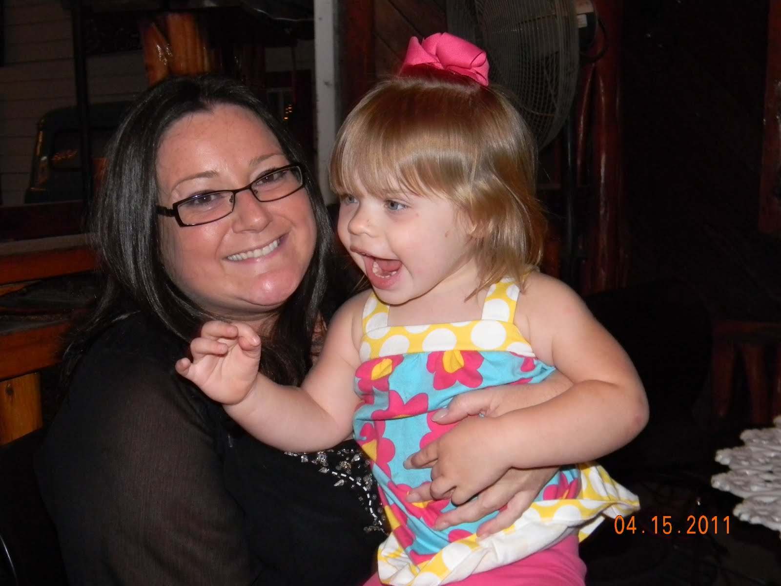 Tim's grandmother was staying there for the weekend and had ice cream for dessert and you know who had to have a bite. I love this picture because poor Mama was trying to put the bite in her mouth and swiper grabbed it and stuck in her mouth!